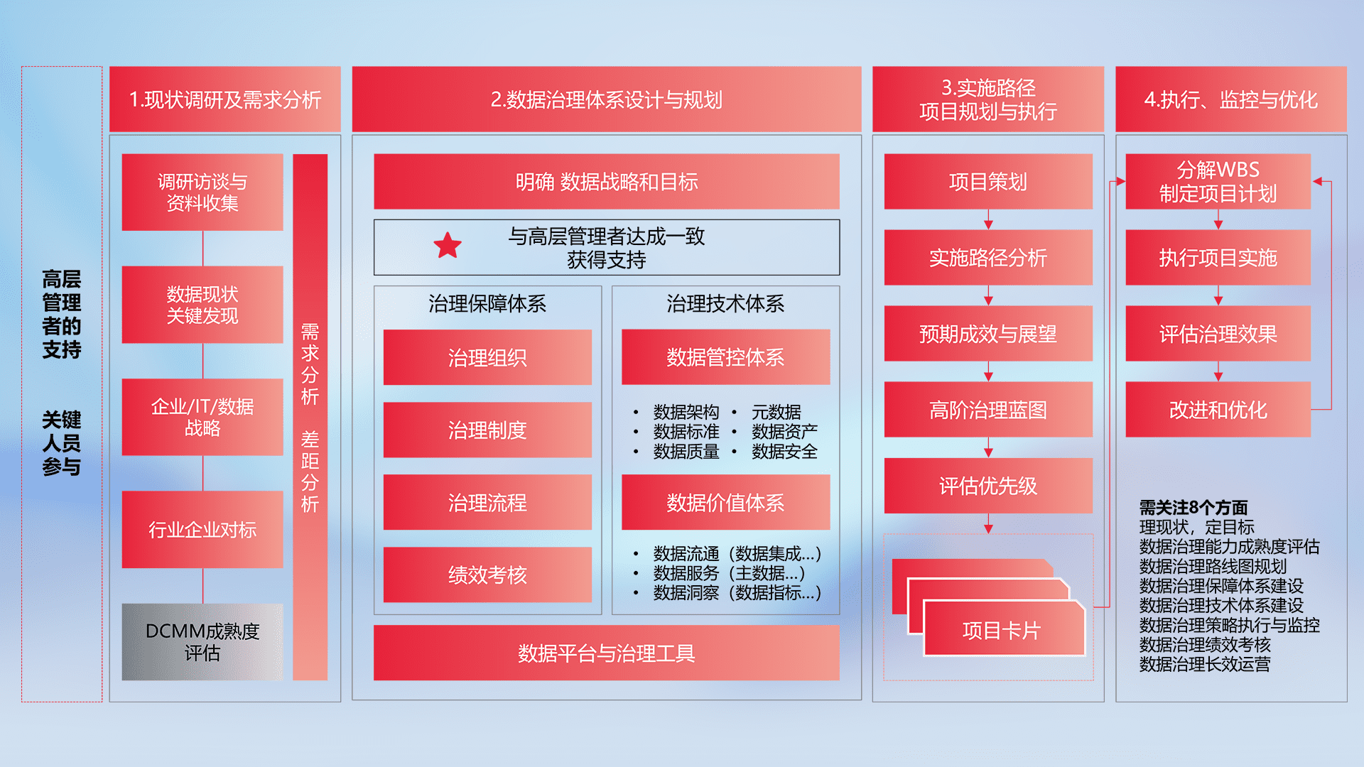 制定并执行统一的数据标准,,规范数据定义和格式,,,消除冗余和不一致性,,,实现跨部门和跨系统的数据一致性,,,,为企业提供标准化的数据基础。。。
